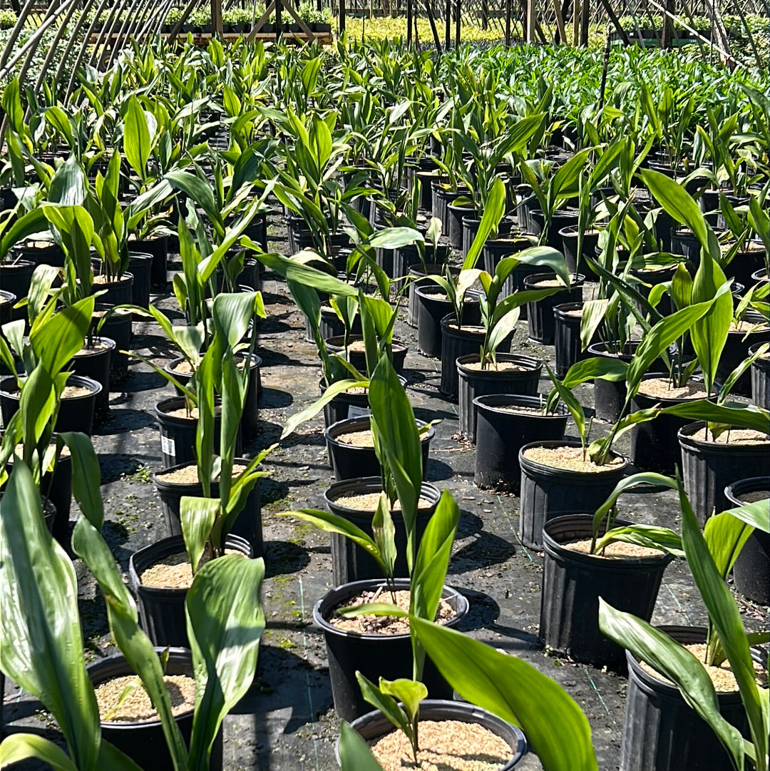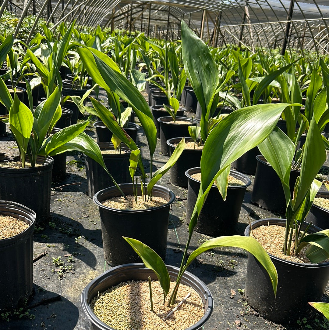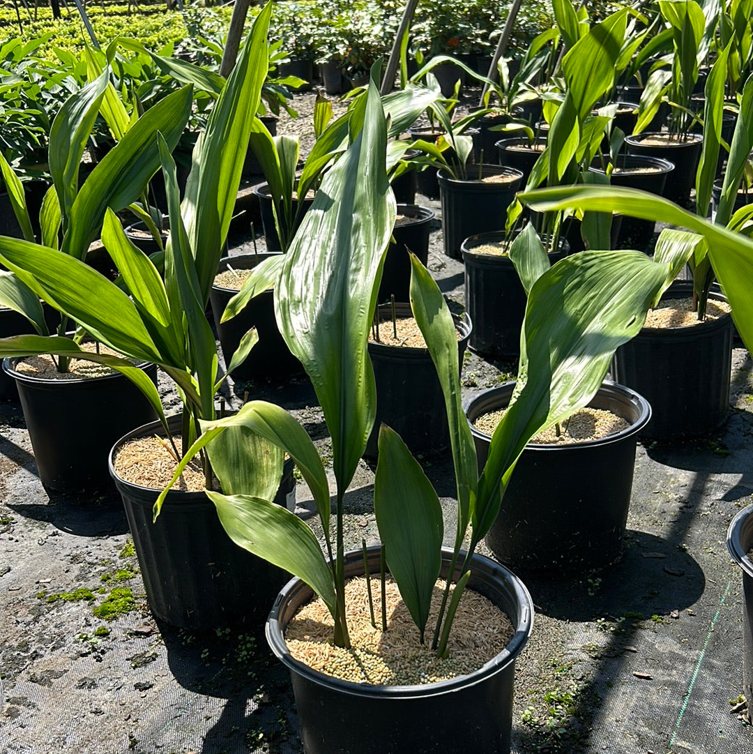 Aspidistra Cast Iron Plant is a hardy, slow-growing evergreen perennial known for its exceptional tolerance of a wide range of growing conditions. The Aspidistra Cast Iron Plant features thick, glossy, lance-like leaves that typically reach 12 to 20 inches long and are most often a rich dark green. Some cultivars of the Aspidistra Cast Iron Plant may display variegated foliage with yellow or cream striping or spotting, though these varieties tend to be less vigorous. Small, insignificant creamy-purple flowers may appear at soil level in spring. Aspidistra Cast Iron Plant grows best in partial shade and well-drained soils and is drought tolerant once established, making it an excellent low-maintenance choice for shaded landscapes and indoor or outdoor use.