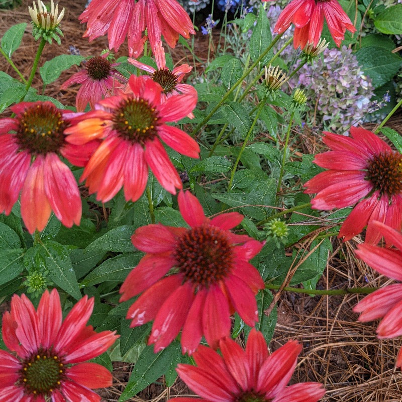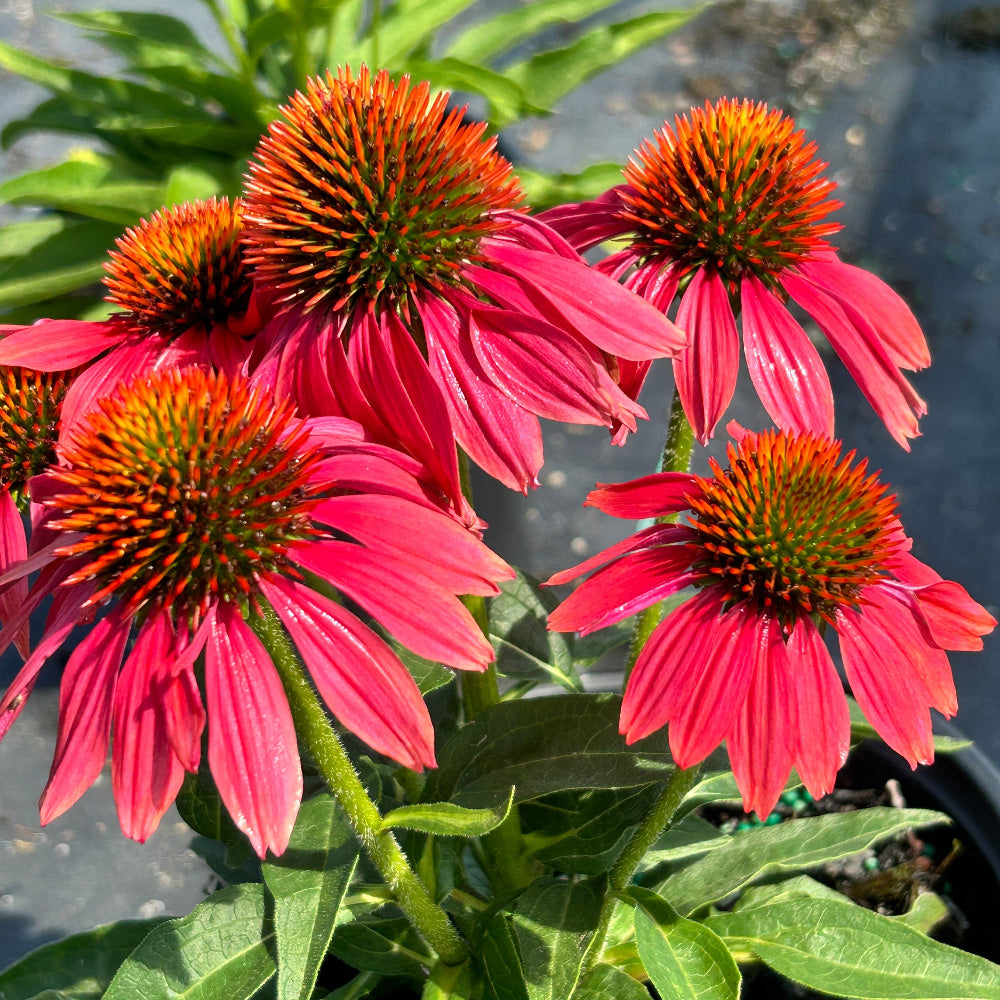 Echinacea Cheyenne Spirit (Coneflower) is an upright, free-branching native perennial with strong stems that do not require staking and attractive gray-green foliage. Echinacea Cheyenne Spirit produces large, fragrant flowers in a vibrant mix of orange, red, purple, and yellow, blooming from summer through fall.
