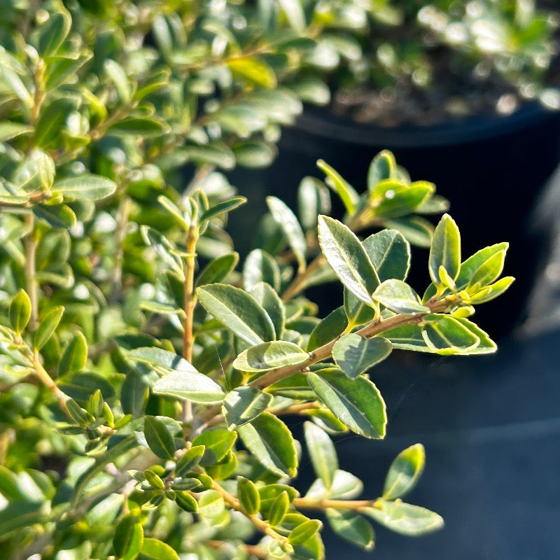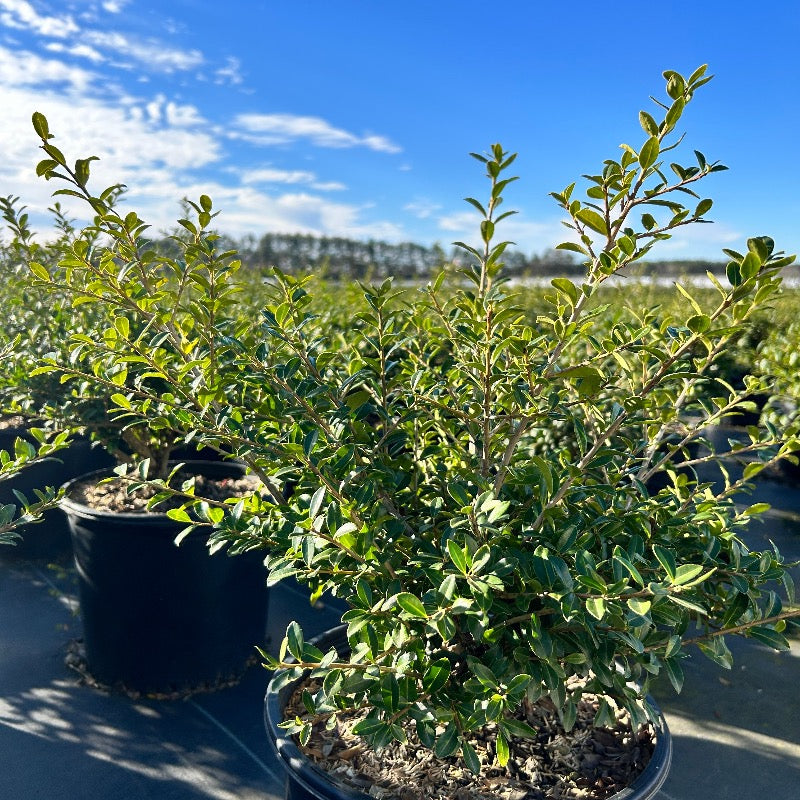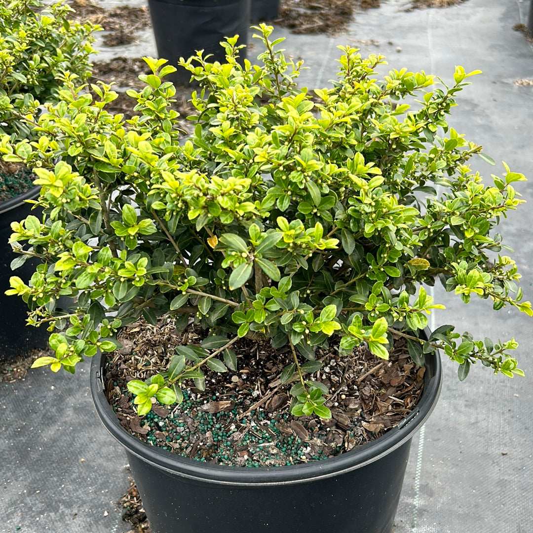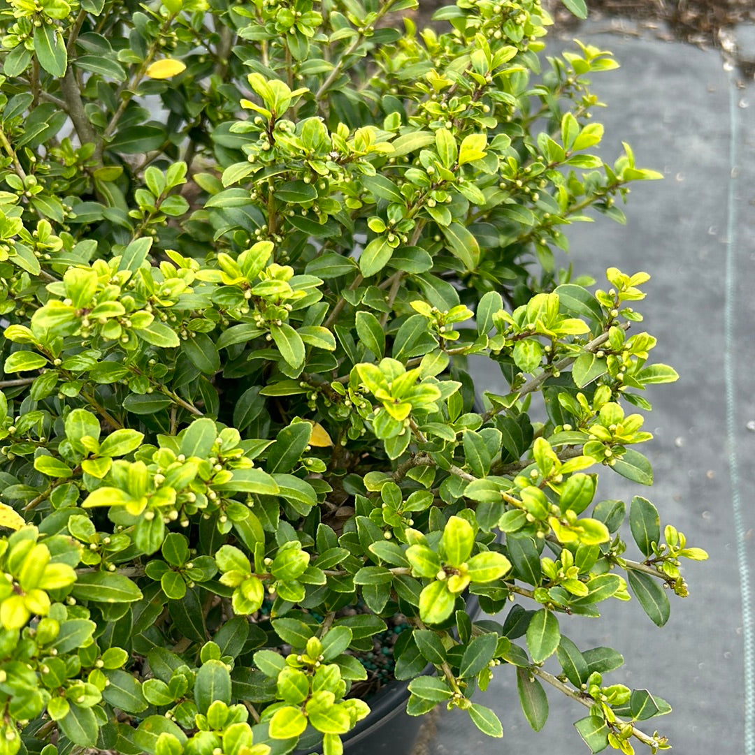 Ilex Green Lustre (Holly) is a densely compact evergreen shrub prized for its neat, boxy form and naturally mounding habit that fits perfectly into formal and modern landscapes. The waxy-smooth dark green foliage of Ilex Green Lustre provides rich year-round color and a refined texture that works beautifully for low hedges, borders, and foundation plantings. In spring, Ilex Green Lustre Holly produces small, inconspicuous flowers that may develop into clusters of glossy black berries in fall when properly pollinated, adding subtle seasonal interest that can last through winter. Thriving in moist, slightly acidic, well-drained soils, Ilex Green Lustre is valued for its durability and low-maintenance performance. As a dioecious holly variety, Ilex Green Lustre requires both male and female plants nearby to ensure reliable fruit production and consistent ornamental appeal.