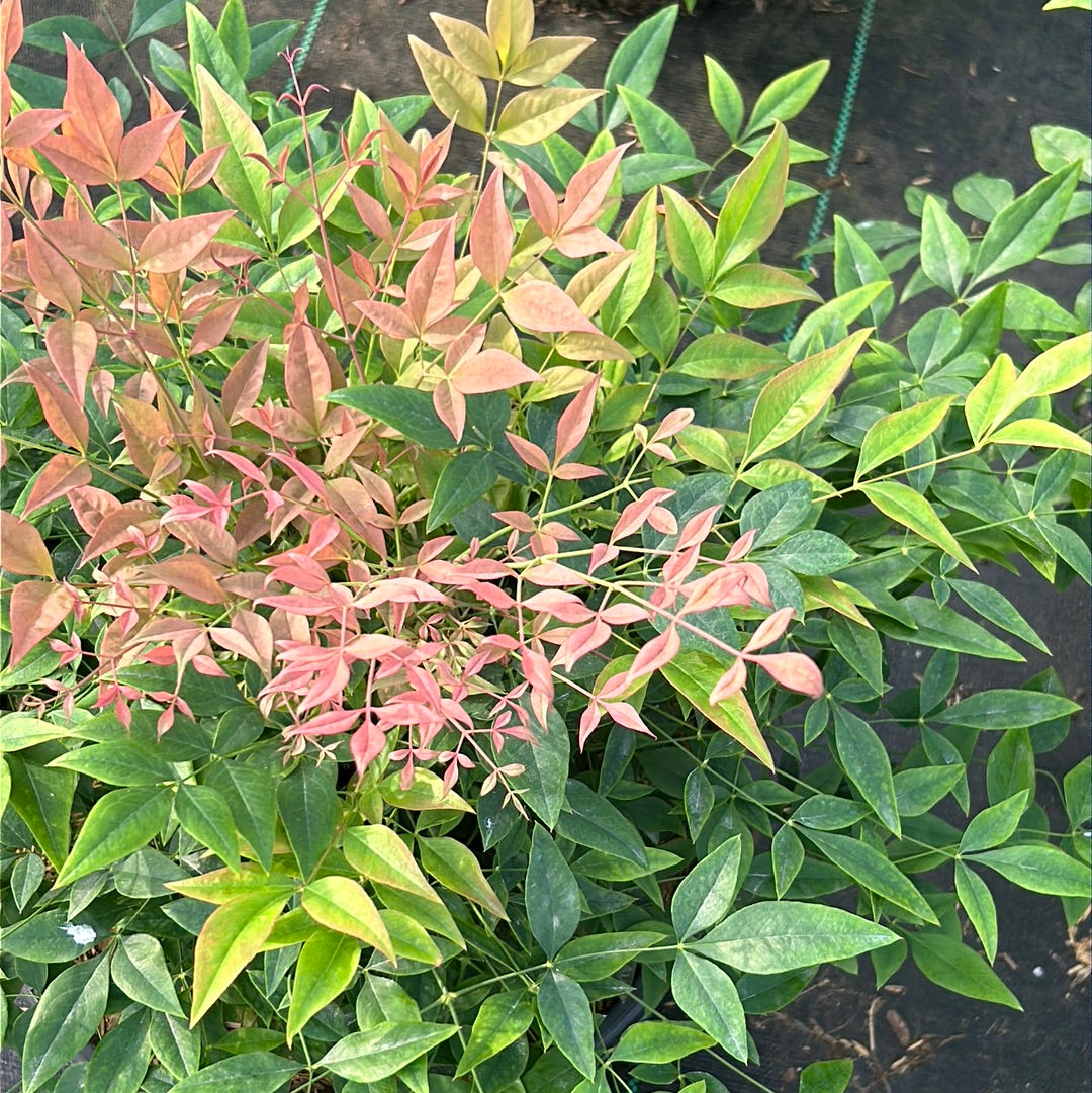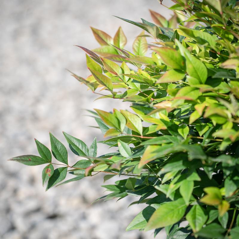 Gulf Stream Heavenly Bamboo is a compact evergreen shrub with continuously changing foliage. The dense bamboo like foliage emerges scarlet red before maturing to blue green and slowly shifts from yellow tints to red in winter. The leaves and berries are highly toxic to animals. Best planted in part sun with rich, moist well-drained soils.