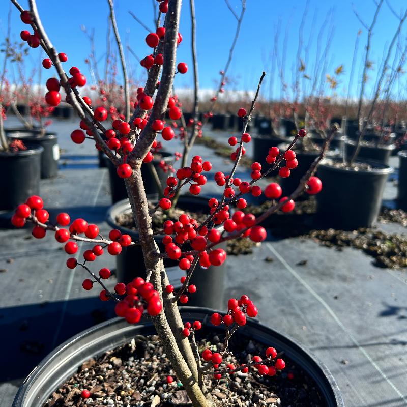 Ilex Sparkleberry is dioecious, meaning both male and female hollies are needed for fruit production. As a native plant, Ilex verticillata, the species behind Ilex Sparkleberry, provides food for birds, pollinators, and acts as a host for moths and the Henry's Elfin Butterfly. While the wildlife enjoy the berries, they are toxic to humans, so planting for wildlife observation is ideal.