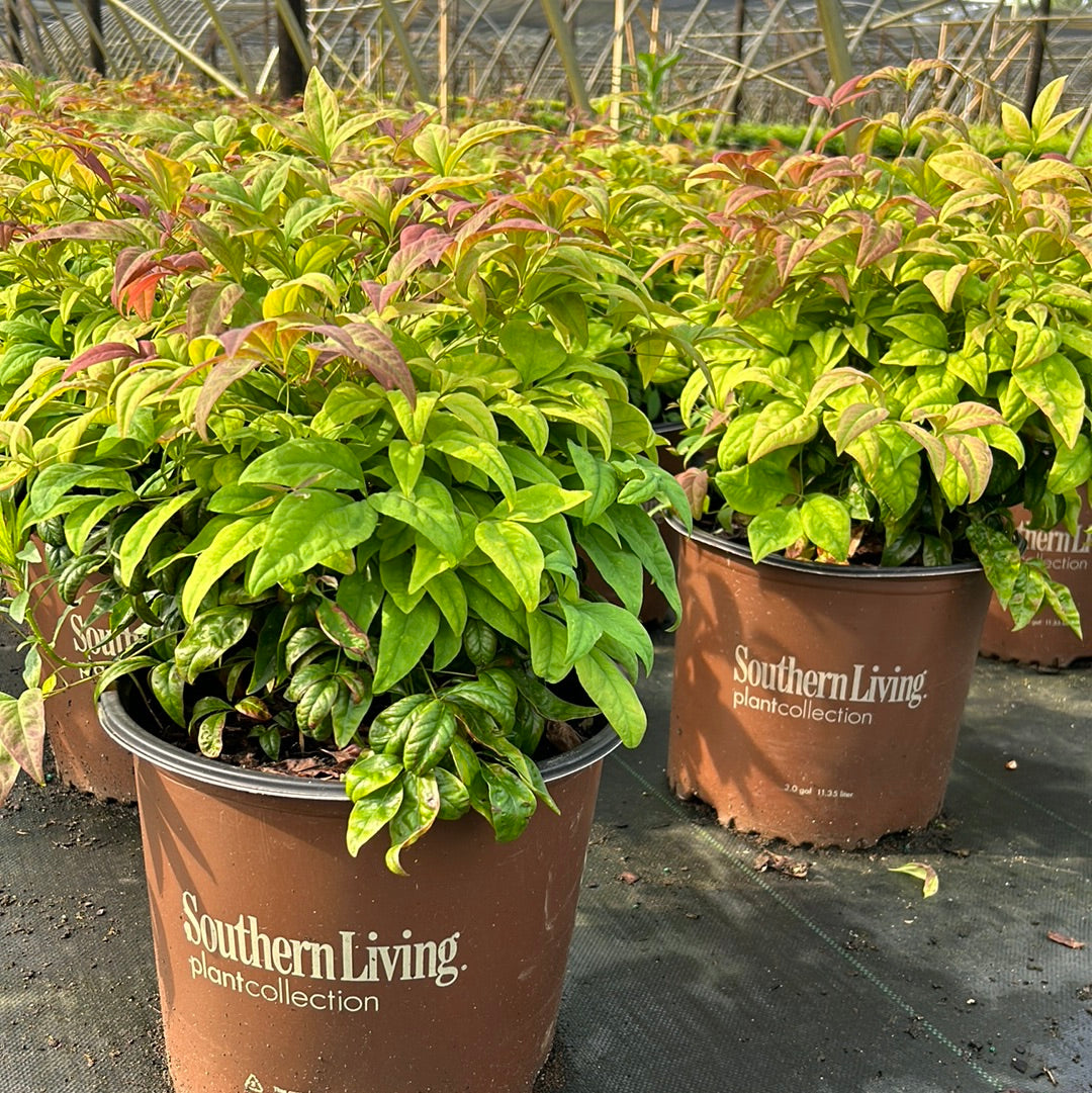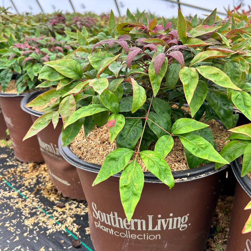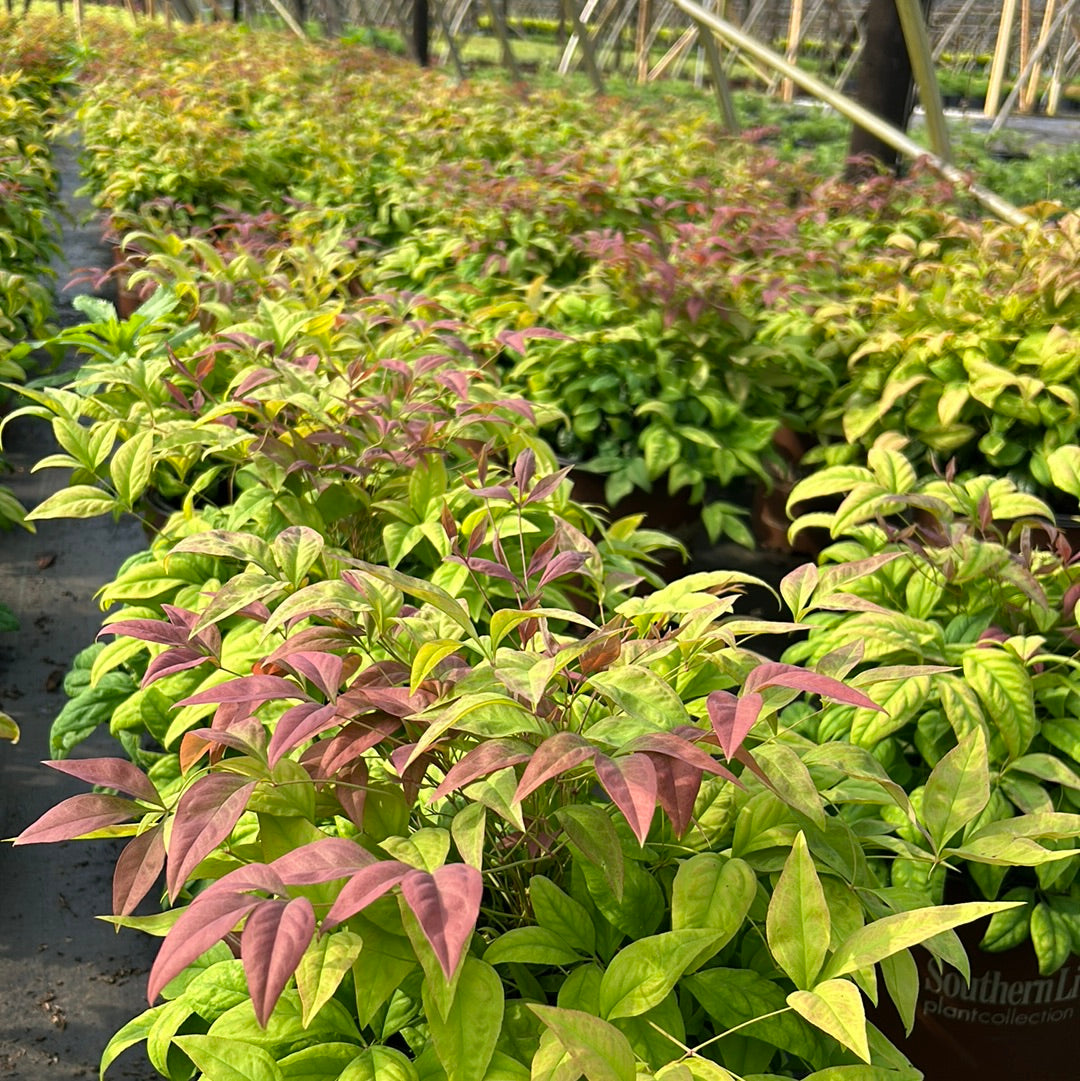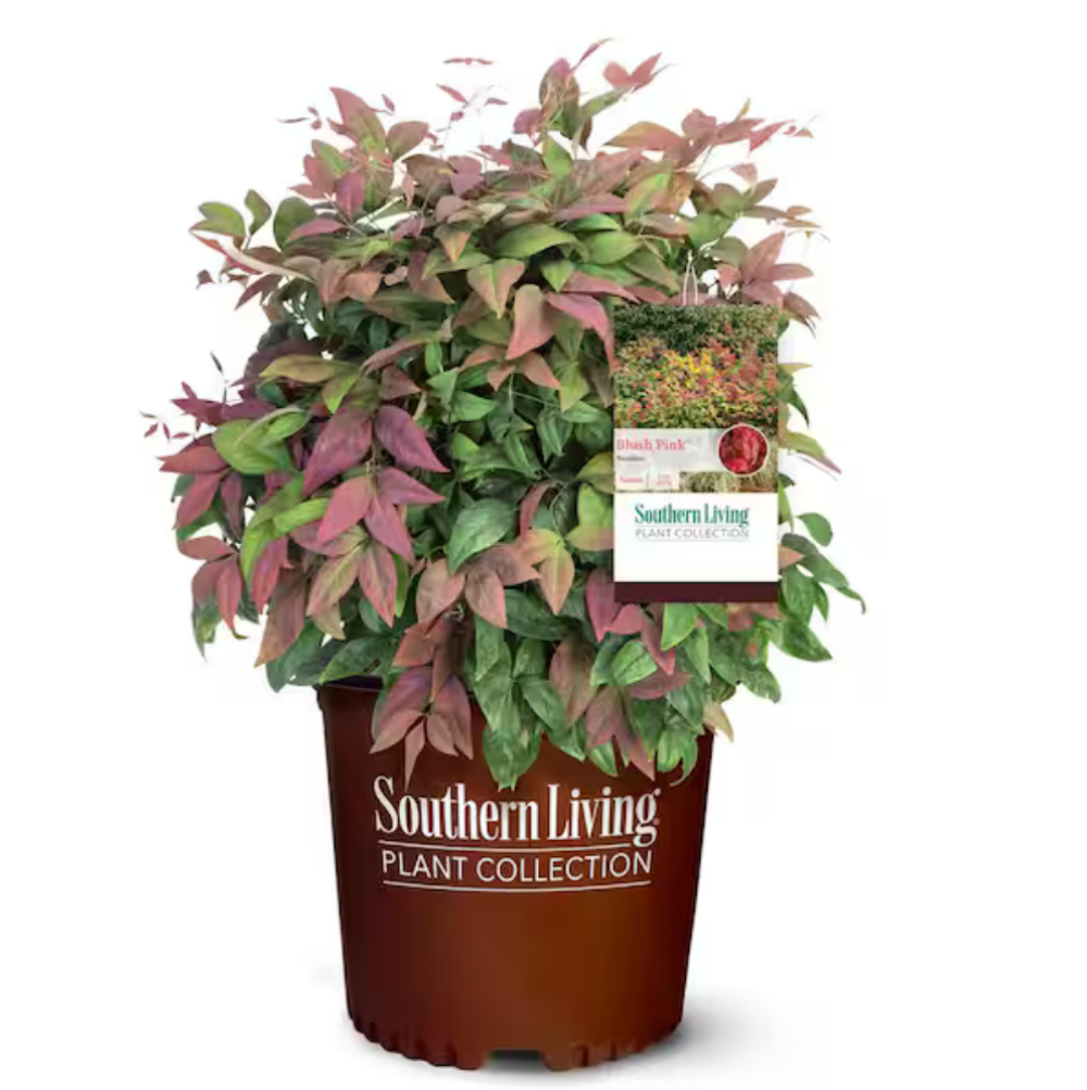Nandina Blush Pink™ (Heavenly Bamboo) is a compact, non-flowering evergreen shrub prized for its colorful and year-round foliage. The bamboo-like leaves of Nandina Blush Pink™ emerge blush pink, maintaining that vibrant color for most of the year before maturing to deep green and turning red in winter. Thriving in part sun with rich, moist, well-drained soil, Nandina Blush Pink™ (Heavenly Bamboo) adds visual interest to borders, foundation plantings, and mixed shrub beds. Note: the leaves and berries of Nandina Blush Pink™ are highly toxic to animals.