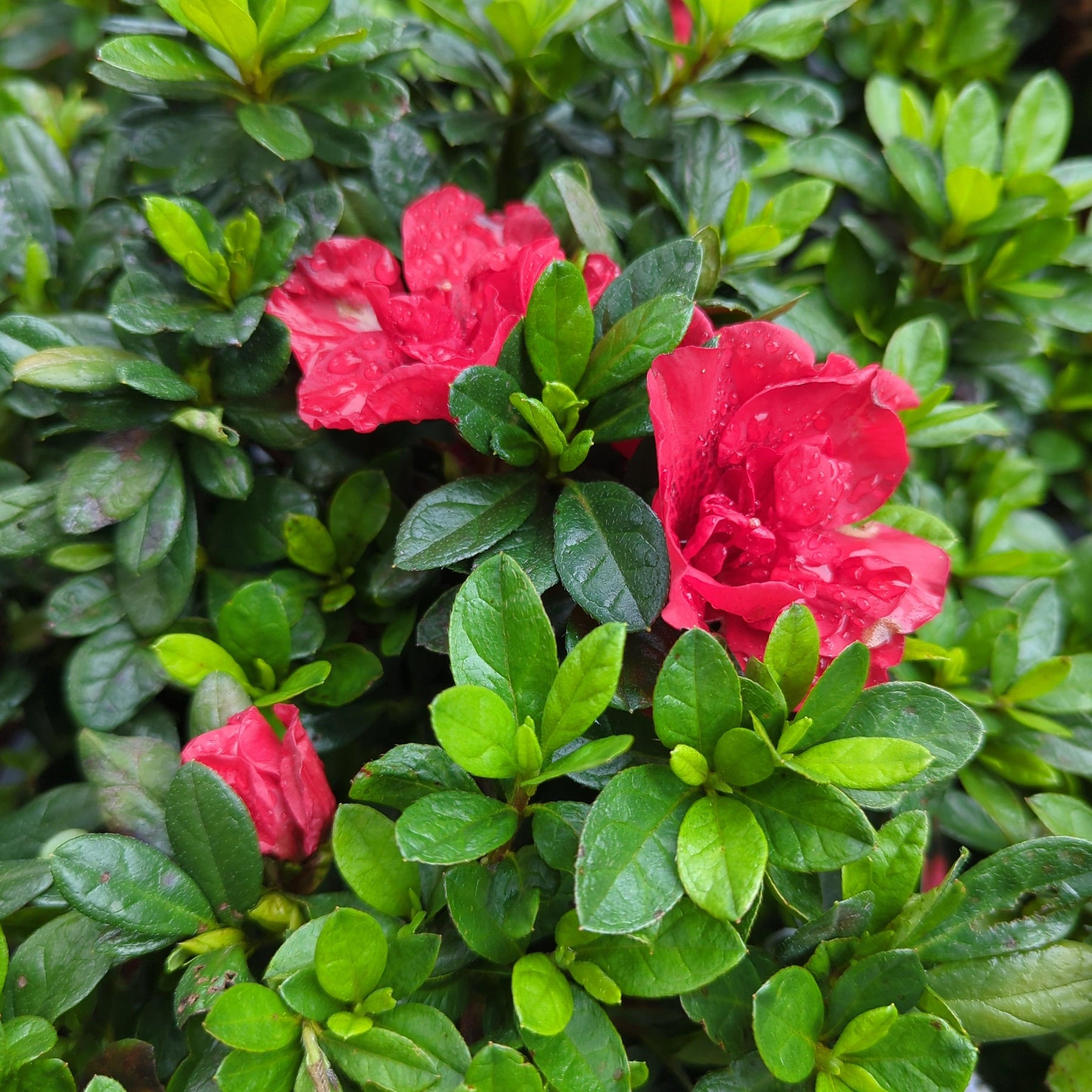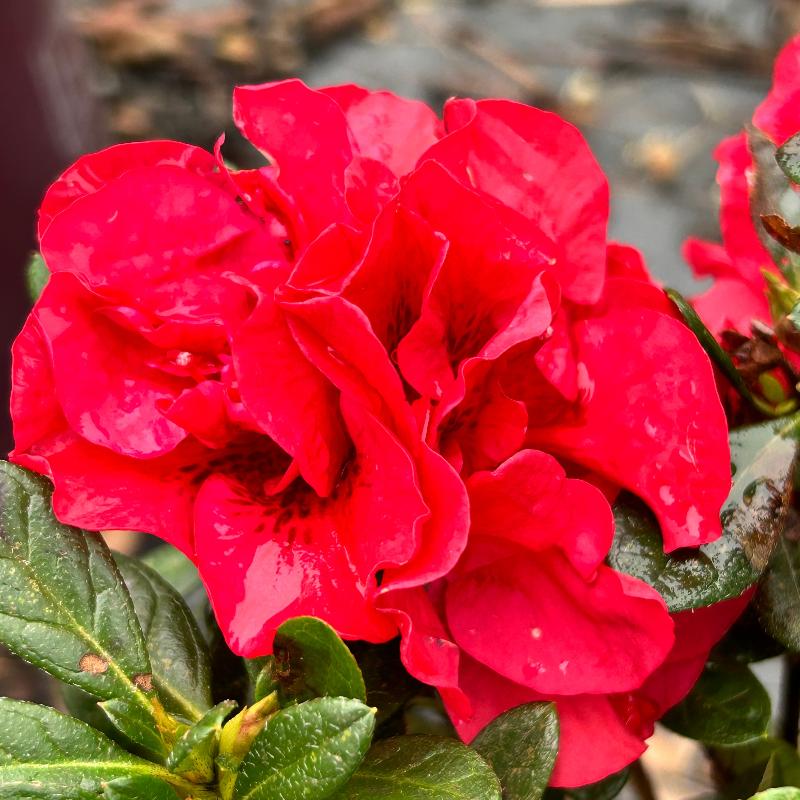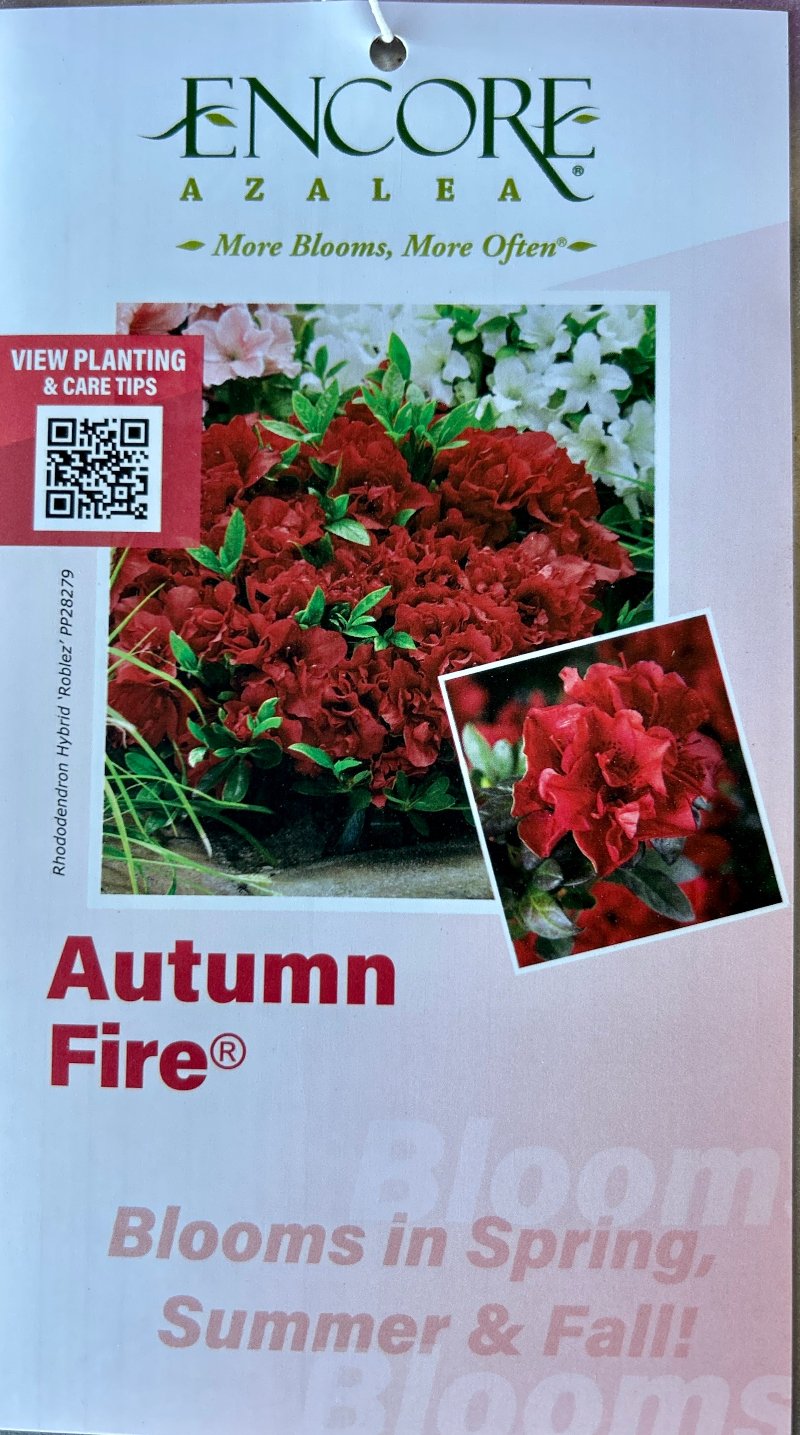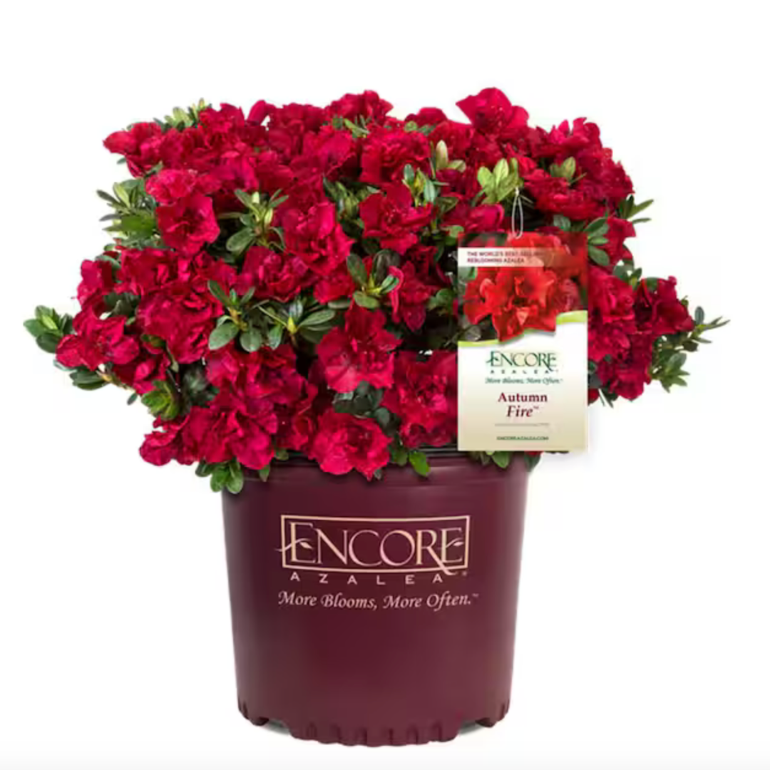 Azalea Encore® Autumn Fire® is a compact dwarf evergreen azalea shrub with small dark green leaves that gain a bronze-purple hue in winter. Azalea Encore® Autumn Fire® produces dense clusters of velvety semi-double deep red flowers that bloom in mid-spring and continue reblooming into fall, delivering long-lasting color and impact. This versatile azalea performs best in partial sun and thrives in acidic, rich, well-drained soils. Azaleas are excellent pollinator and butterfly attractors, making Azalea Encore® Autumn Fire® a standout choice for foundation plantings, woodland gardens, and mixed shrub beds.
