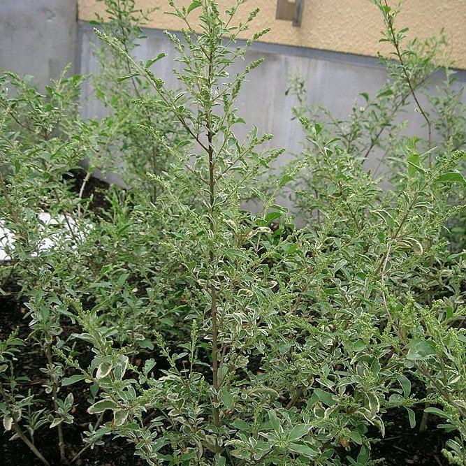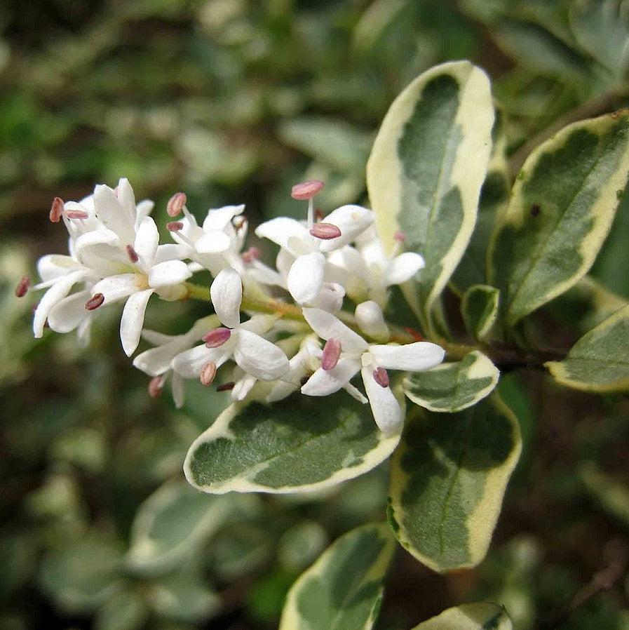 Ligustrum sin. Variegated Privet is a dense, upright evergreen shrub featuring shiny, ovate grey-green leaves edged with thin creamy white margins. In spring, Ligustrum sin. Variegated Privet produces small, fragrant white flowers followed by ornamental black drupes, adding seasonal interest to gardens and landscapes. Thriving in full sun with rich, well-drained soil, this sterile, non-invasive Ligustrum sin. Variegated Privet is a low-maintenance choice for hedges, borders, and foundation plantings. Note: the flower fragrance can be odorous to some, but the foliage provides consistent year-round beauty.