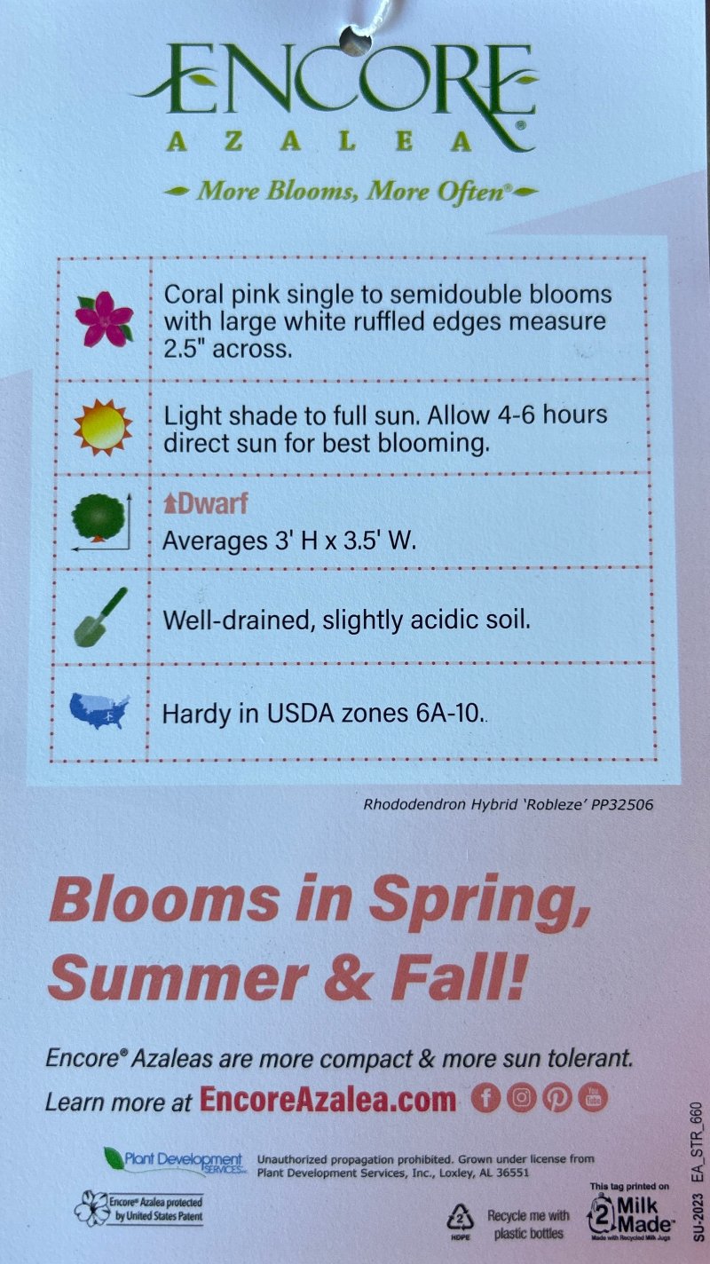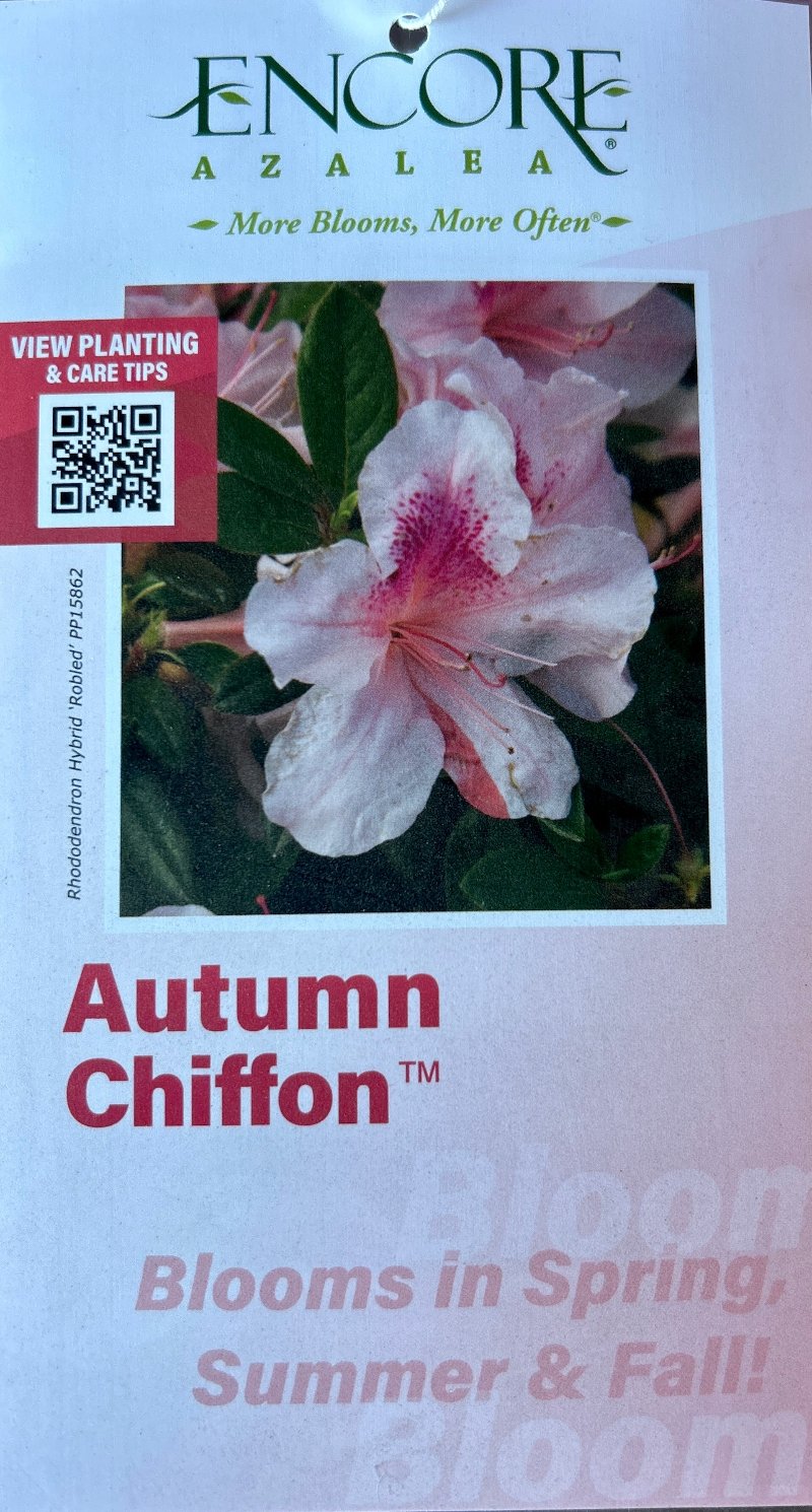 Azalea Encore® Autumn Chiffon® is a compact dwarf azalea shrub with small green foliage and a neat, rounded habit. Azalea Encore® Autumn Chiffon® produces ruffled bi-colored white and pink flowers that bloom first in mid-spring, bloom heavily through the summer, and continue to rebloom into fall. This versatile azalea performs best in partial sun and thrives in acidic, rich, well-drained soils. Azaleas are excellent pollinator and butterfly attractors, making Azalea Encore® Autumn Chiffon® a beautiful choice for foundation plantings, woodland gardens, and mixed shrub beds.