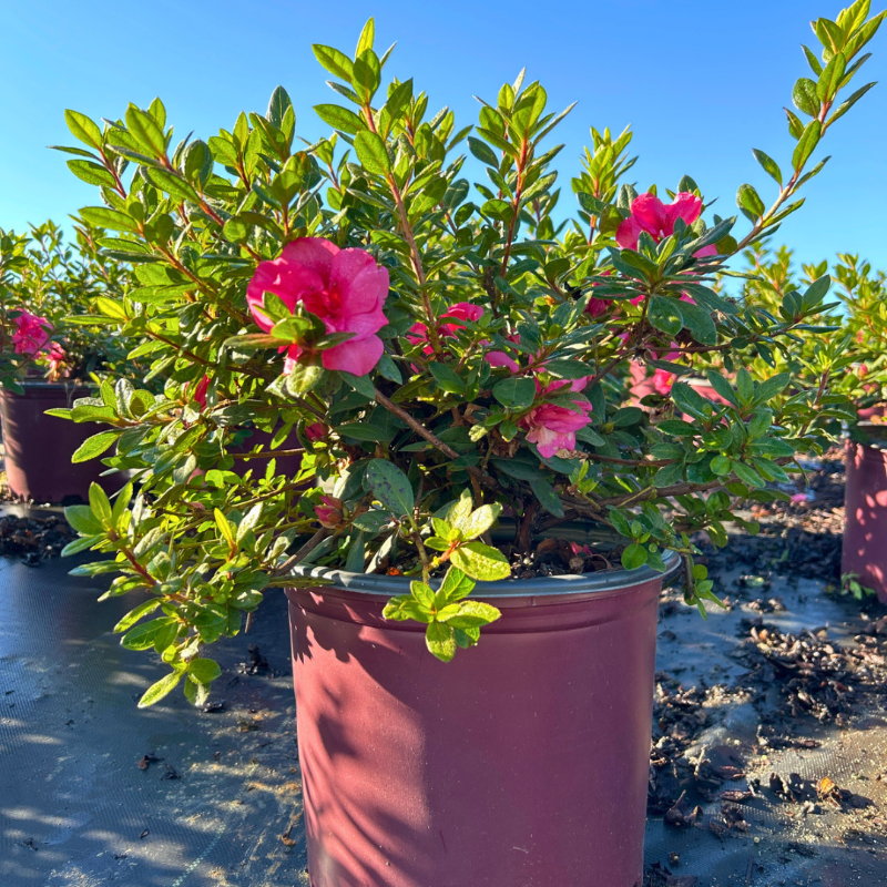Azalea Encore® Autumn Rouge® is the original azalea of the Encore series, a reblooming evergreen shrub with small, very deep green foliage. Azalea Encore® Autumn Rouge® produces ruffled semi-double deep pink flowers that bloom in spring and continue to rebloom into fall, offering long-lasting seasonal color. This versatile azalea performs best in partial sun and thrives in acidic, rich, well-drained soils. Azalea Encore® Autumn Rouge® is a classic choice for foundation plantings, woodland gardens, and mixed shrub beds.
