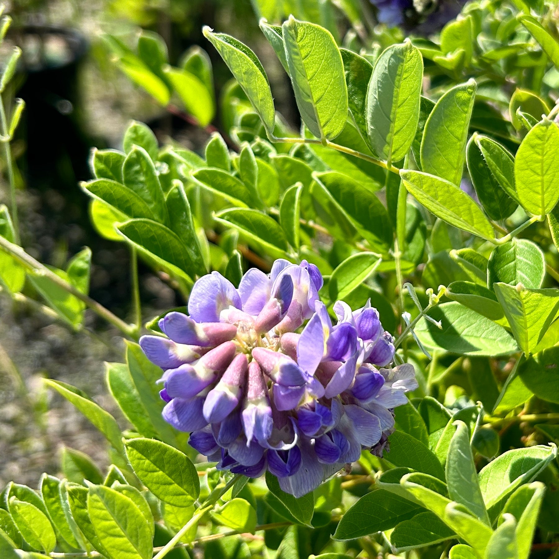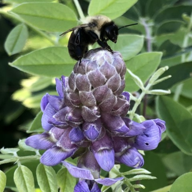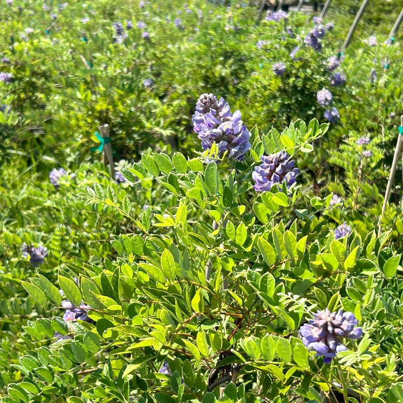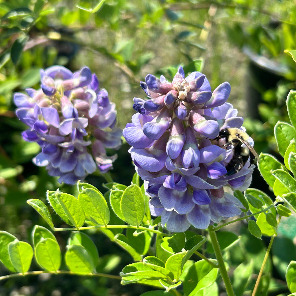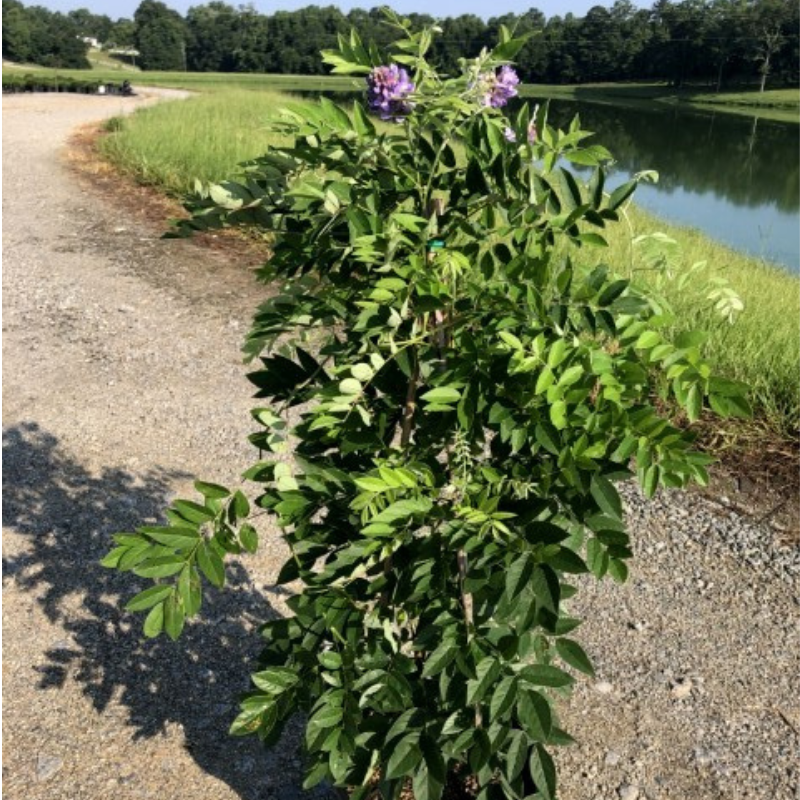 Amethyst Falls American Wisteria is a fast-growing twining deciduous vine native to the States with small leaves. The drooping raceme sporting fragrant pea-like lilac flowers bloom on new growth, attracting bees and butterflies in spring with a light rebloom in summer. Flat brown seedpods follow the flowers. Blooms best in full sun and well-drained soil. Amethyst Falls is not an aggressive spreader, but has low toxicity.