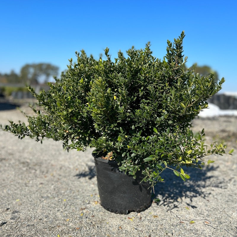 Ilex Hoogendorn (Holly) is a low-growing, densely branched evergreen shrub prized for its compact form and flattened dark green foliage that resembles boxwood, making it ideal for formal borders, rock gardens, and foundation plantings. As a male plant, Ilex Hoogendorn does not produce berries but serves as an excellent pollinator for nearby female hollies, ensuring reliable fruit production in dioecious plantings. Thriving in moist, slightly acidic, well-drained soils, Ilex Hoogendorn adapts well to sun or partial shade and provides year-round structure and texture in the landscape. Gardeners value Ilex Hoogendorn for its slow, manageable growth, attractive evergreen foliage, and important role in supporting female hollies for ornamental berry displays. Its dense branching and tidy habit make it a versatile and low-maintenance addition to any garden.