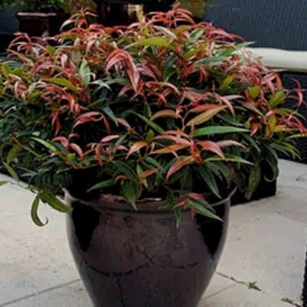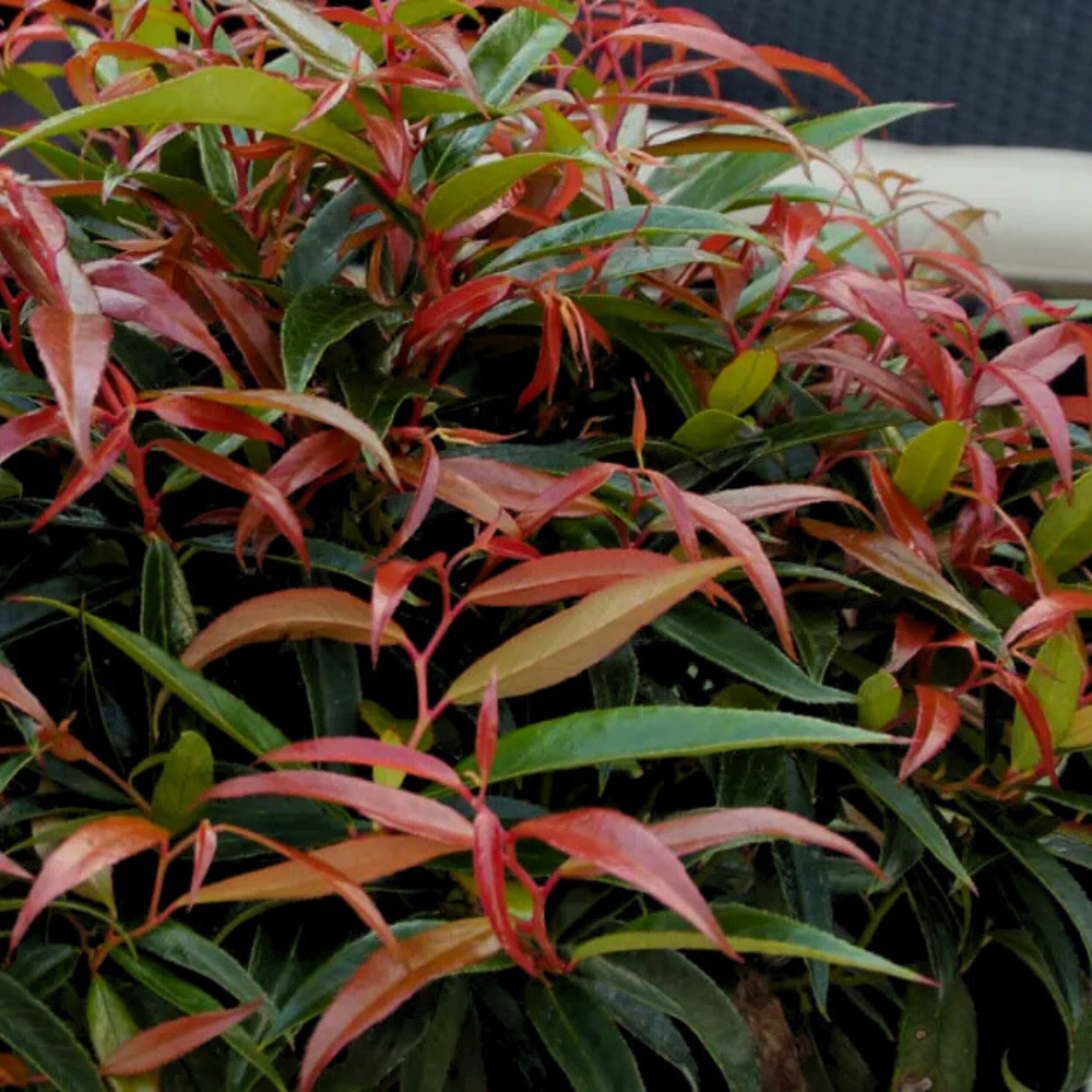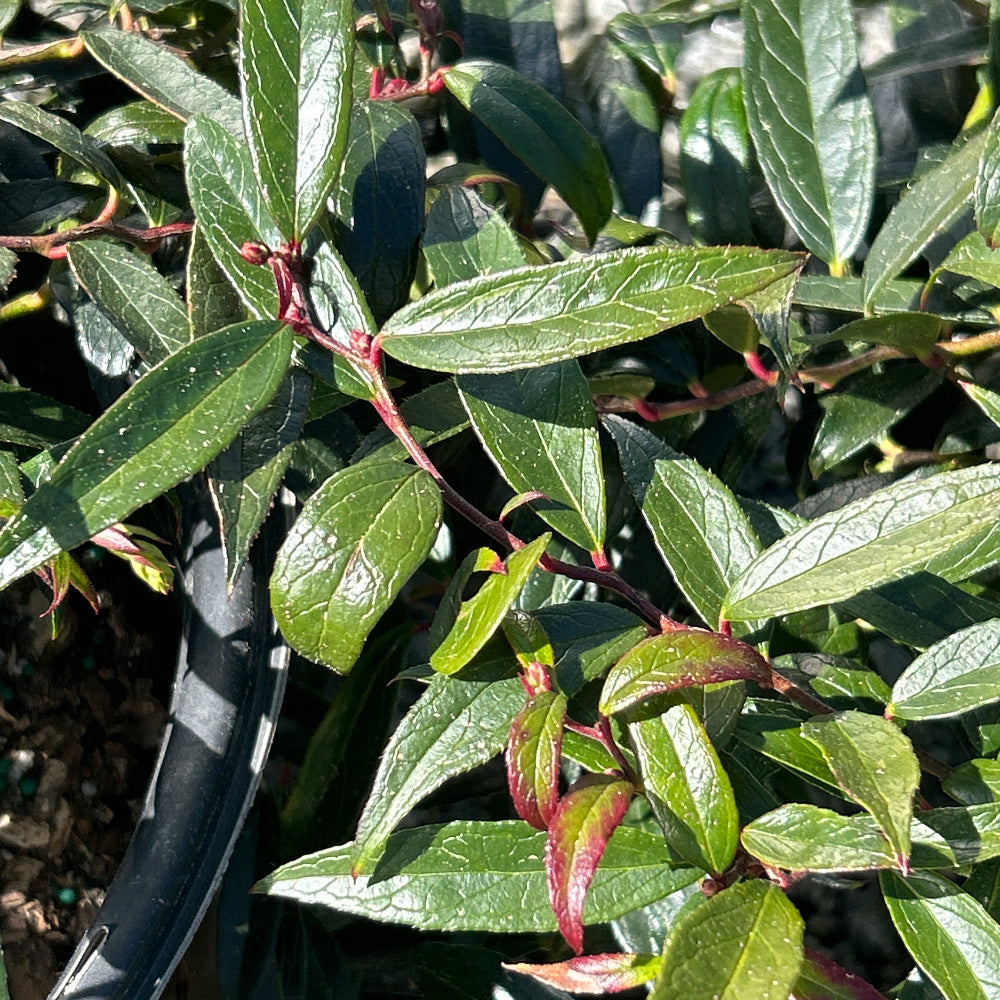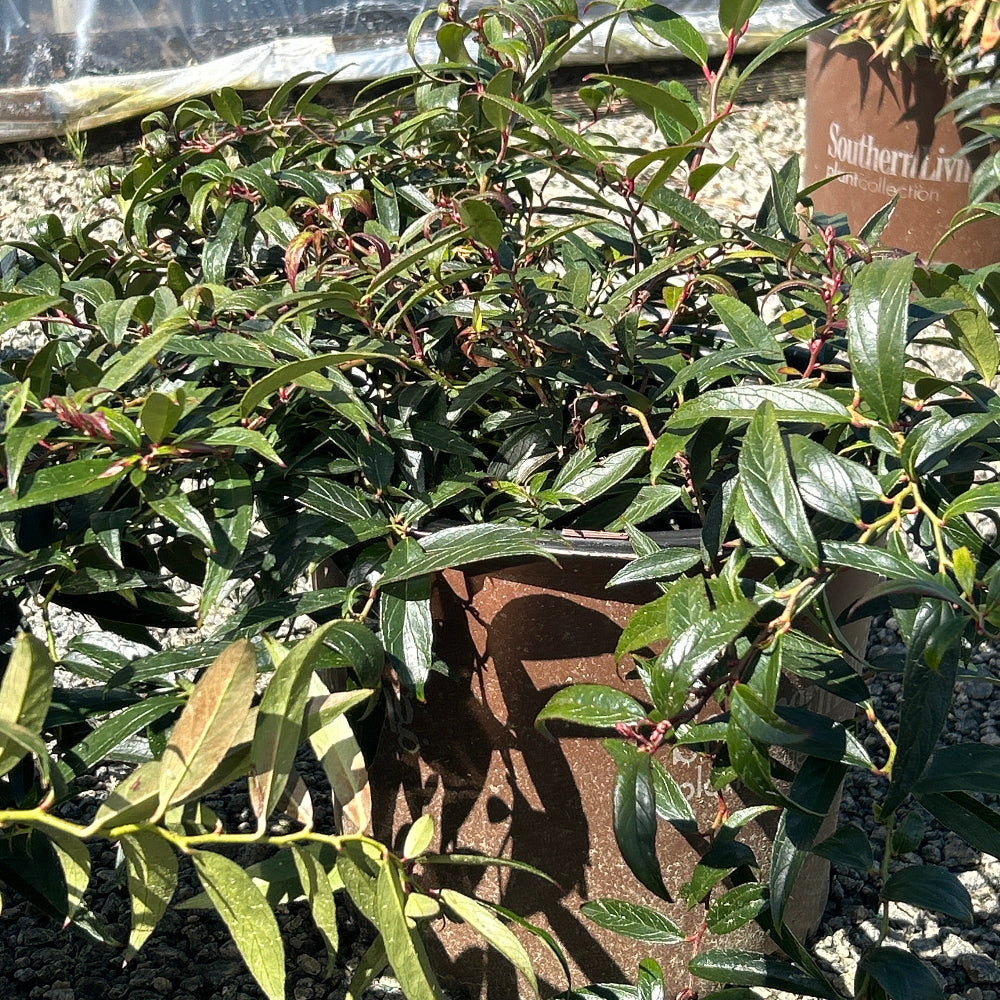 Leucothoe Burning Love™ is a compact, multi-stemmed evergreen shrub with an upright-spreading habit. The rich, glossy dark green foliage of Leucothoe Burning Love™ emerges bright red and deepens to burgundy in fall, providing striking seasonal color. From mid-spring into early summer, axillary clusters of fragrant, urn-shaped white flowers bloom, adding charm to gardens and borders. Thriving in partial sun with rich, moist, acidic, well-drained soils, Leucothoe Burning Love™ is a low-maintenance shrub—but its leaves are highly toxic if ingested.