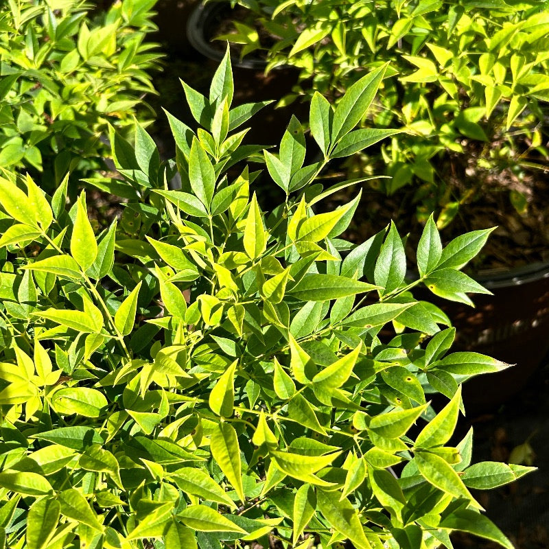 Lemon-Lime Heavenly Bamboo is a highly compact variegated dwarf evergreen shrub grown for its interesting foliage.  The bamboo like foliage emerges chartreuse green and matures to dark green with a chartreuse margin. Lemon-Lime rarely flowers.  The leaves and berries are highly toxic to animals.   Best planted in part sun  with rich, moist well-drained soils.