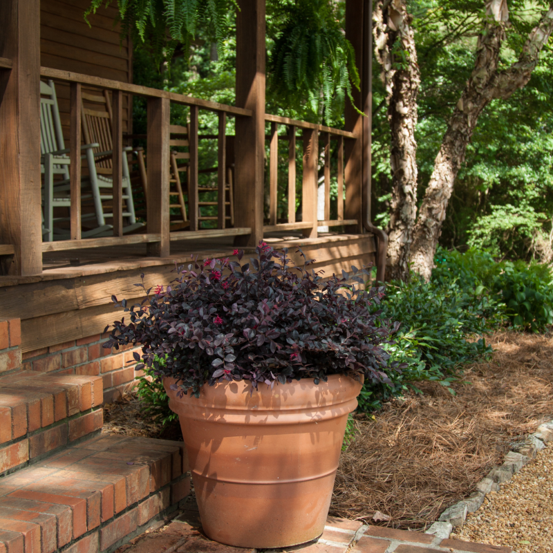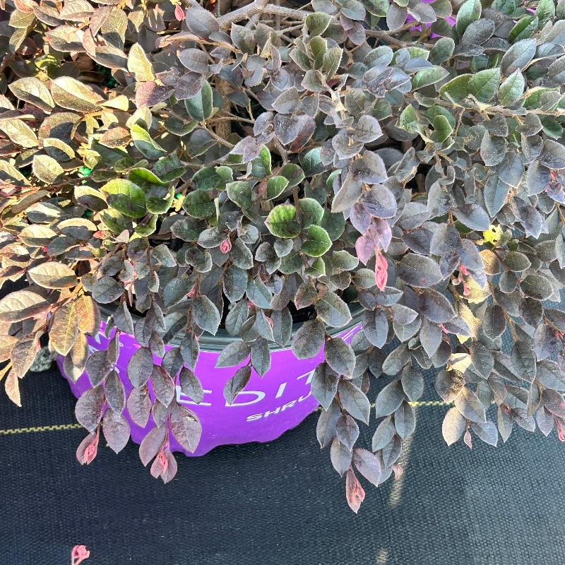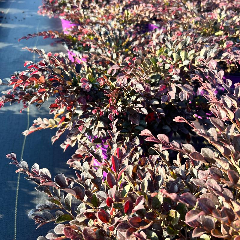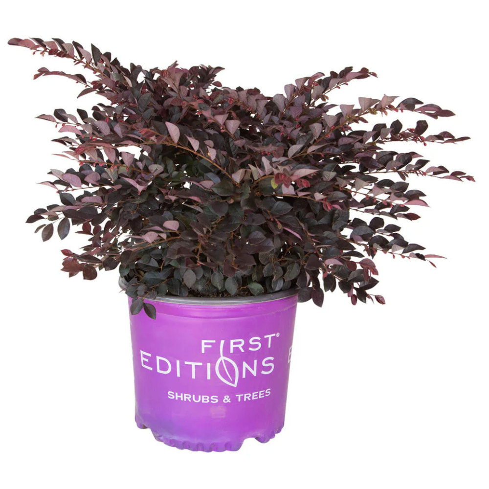 Crimson Fire Fringe Flower is a compact dwarf evergreen shrub with graceful arching branches with deep ruby foliage that fades to burgundy and heavy blooms of vibrant neon pink fringe-like flowers in late winter through spring. Best color in part sun and moist, acidic, well-drained soil.